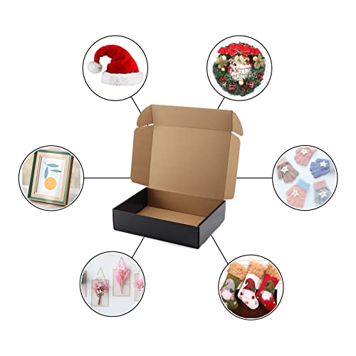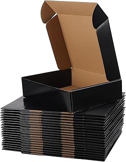 Material: Made from 32 ECT grade kraft corrugated cardboard, these boxes are sturdy and reliable for transporting small and lightweight items. Design: Each set contains 20 packs of 12x9x3 inch boxes, pre-flattened for easy and efficient storage. Easy Assembly: Quick setup with simple folding; these boxes can be assembled in seconds. Versatility: Perfect for small business operations, retail packaging, secure storage, and effective mailing. Customization: The black exterior provides a blank canvas for personalized branding or decorative elements, making it suitable for both commercial and gifting purposes.